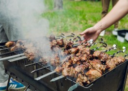решетку для барбекю, шампуры, уголь, жидкость для розжига и другие